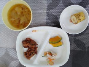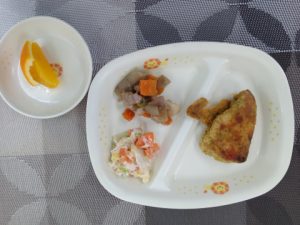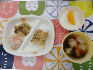 魚の磯辺揚げ、筑前煮、白菜とささみのサラダ