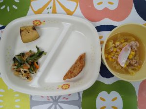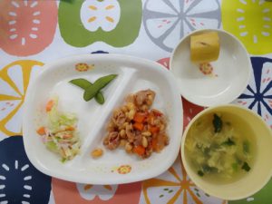 いろいろやっていても給食のことも気になるようで、毎朝キッチンに今日の給食の献立やおやつを聞きにきてくれる子がたくさんいます☺️嬉しいですね。